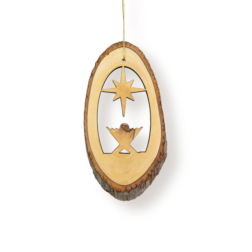 Holy Land Olive Wood Live Edge Oval Slab Manger with Star Ornament