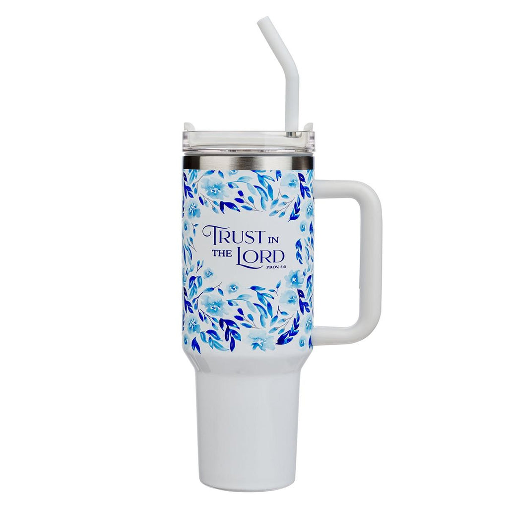 Trust Prov. 3:5 Tumbler w/straw SS Blue Floral