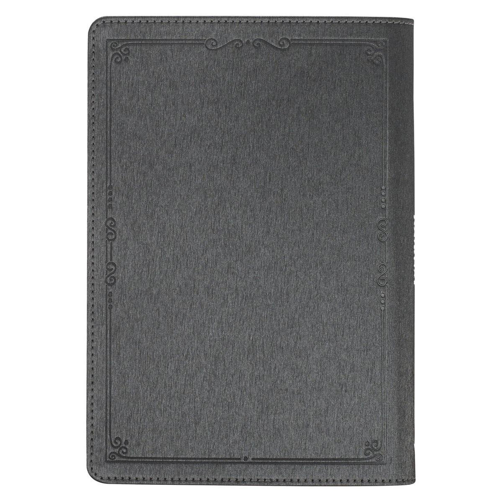 The back cover continues the same teal floral pattern, and a sturdy gold zipper with a matching gold metal zipper pull keeps your writing safe. A coordinating satin ribbon bookmark ensures you never lose your place. This journal includes 336 lined pages, each with a Scripture verse at the bottom and a presentation page inside the cover for noting a special occasion.