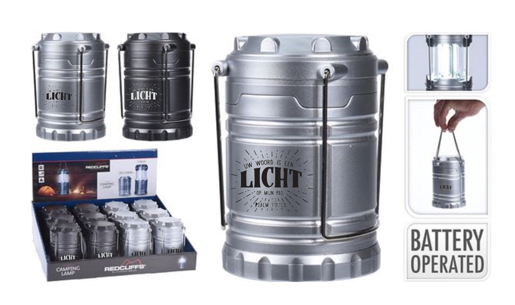 Ons Campinglicht is de perfecte metgezel voor avonturiers, zowel jong als oud. Met krachtige LED-verlichting brengt het heldere, betrouwbare licht in zowel zwart als antraciet grijs. Met een simpele beweging, trek je de top omhoog, en het licht springt aan. Of je nu midden in de natuur kampeert of een spannend verhaal voorleest in je tent, dit licht biedt vele uren verlichting. Betrouwbaar en praktisch, ons Campinglicht maakt elk buitenavontuur nog leuker en elke nacht in de natuur een stukje magischer. Ga licht, ga helder, ga avontuurlijk!