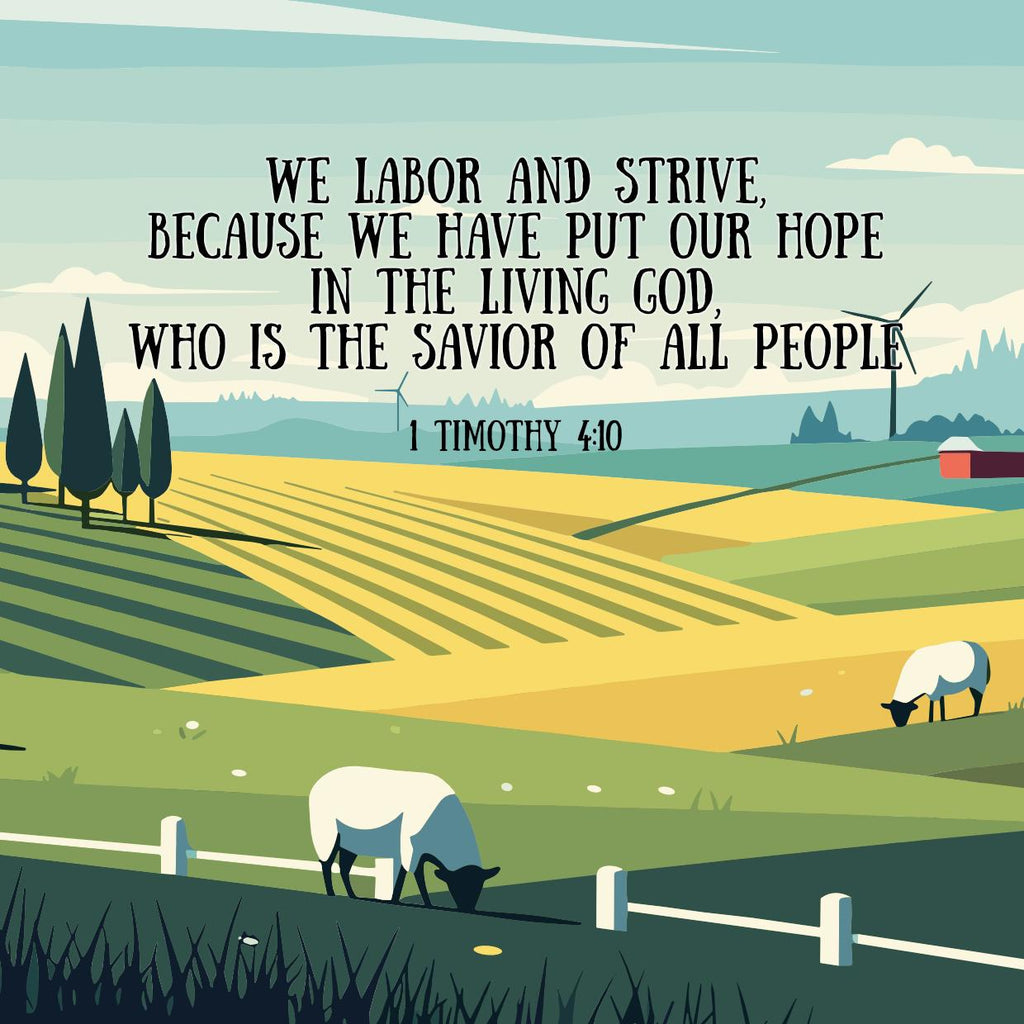 The tile features the inspiring Bible verse from 1 Timothy 4:10: