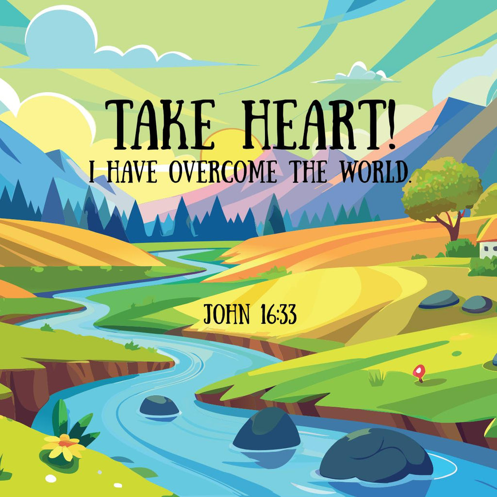 The tile features the inspiring Bible verse from John 16:33:
