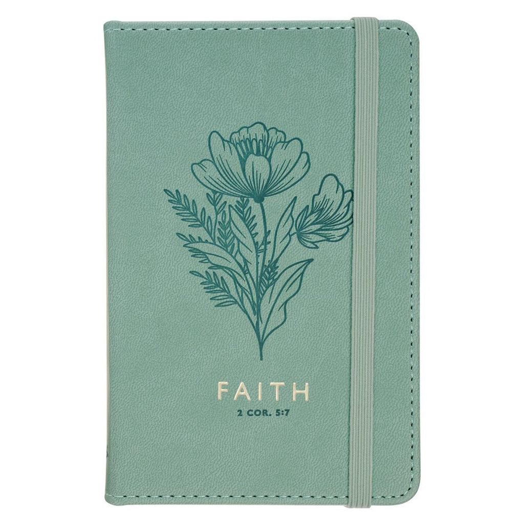 The Faith Teal Floral Faux Leather Hardcover Notebook with Elastic Band Closure is part of the Faith Teal Floral Collection, which also includes a faux leather bookmark, a faux leather journal, and a KJV Bible. This collection's simple message and minimalist design make it a perfect gift of gentle encouragement for a friend.