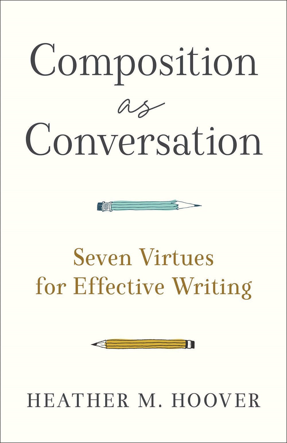 Geschreven door een docent met meer dan vijftien jaar ervaring in het schrijfonderwijs op de universiteit, onderzoekt Composition as Conversation wat er gebeurt wanneer de kunst van het converseren de kunst van het schrijven ontmoet. Heather Hoover laat zien hoe zeven deugden – waaronder nieuwsgierigheid, aandacht, herkenbaarheid, openheid en vrijgevigheid – het schrijfproces beïnvloeden en studenten kunnen helpen effectievere schrijvers te worden. Ze nodigt schrijvers van alle niveaus uit om met hun schrijfwerk een betekenisvolle bijdrage te leveren.
