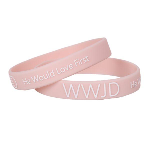 Inspire faith and positivity with this pack of Christian silicone bracelets. Each bracelet is designed in a soothing pink color and features bold white lettering that reads WWJD – He Would Love First. More than just an accessory, these bracelets serve as daily reminders to live out Christ’s example of love, compassion, and kindness. Perfect for wearing to church, Bible study, youth group, or everyday activities, they help spark meaningful conversations about faith wherever you go.