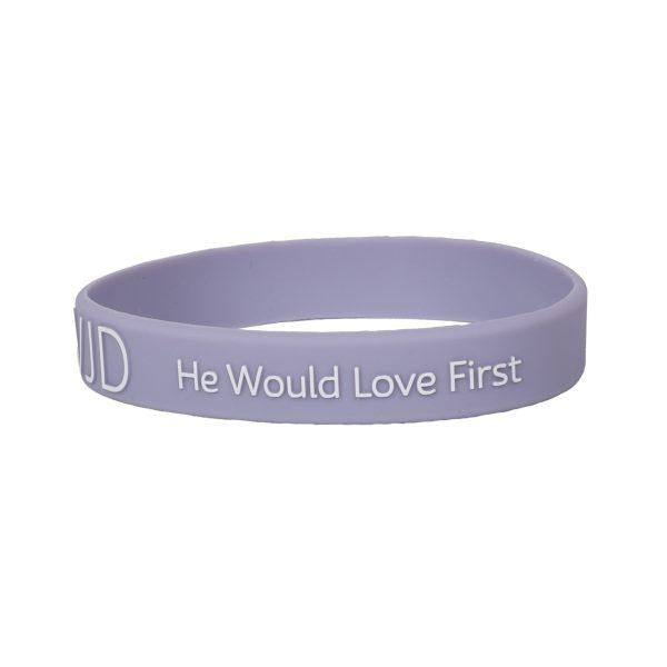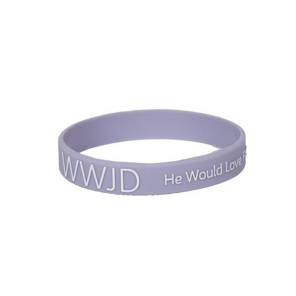 · Violet bold white WWJD – He Would Love First message