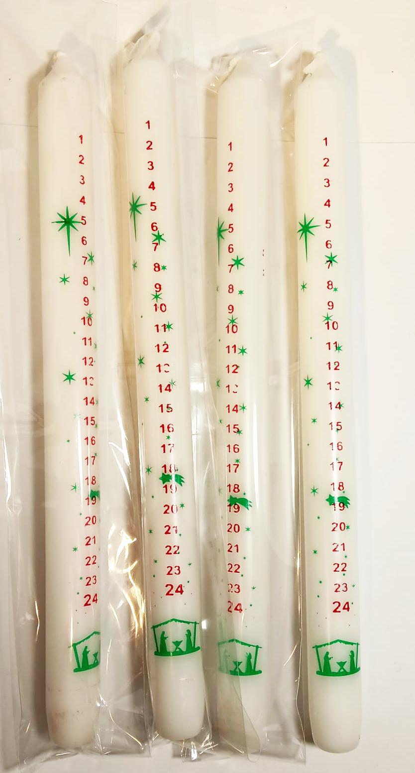 Deze prachtige adventskaars is de perfecte manier om af te tellen naar Kerstmis. De kaars is wit en voorzien van een elegante rood en groene opdruk, die een feestelijke sfeer in huis brengt. Op de kaars staan ​​24 genummerde machtigingen, elk voor een dag in december tot aan Kerstmis. Brand elke dag een stukje van de kaars en geniet van het langzaam korter worden van de dagen. Deze adventskaars is niet alleen een sfeervol decoratief item, maar ook een mooie traditie om samen met familie en vrienden het kerstseizoen te vieren. Perfect als cadeau of voor eigen gebruik!