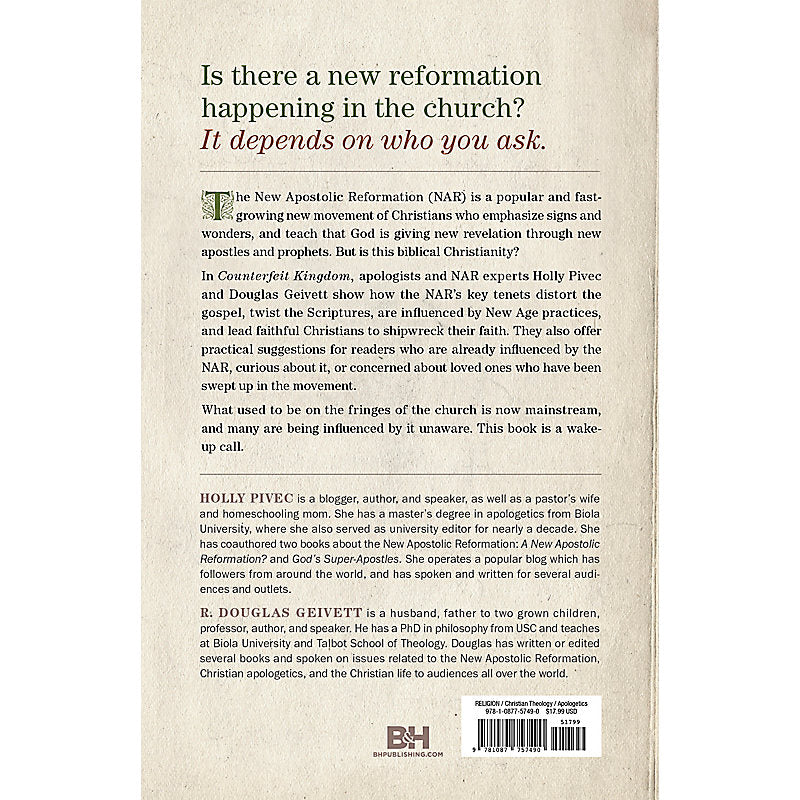 In Vals Koninkrijk, Apologeten en NAR-experts Holly Pivec en Douglas Geivett laten zien hoe de kernprincipes van de NAR het evangelie verdraaien, de Schrift verdraaien, beïnvloed worden door New Age-praktijken en ertoe leiden dat gelovige christenen hun geloof verliezen. Ze bieden ook praktische suggesties voor lezers die al beïnvloed zijn door de NAR, er nieuwsgierig naar zijn of zich zorgen maken over dierbaren die door de beweging zijn meegesleurd.