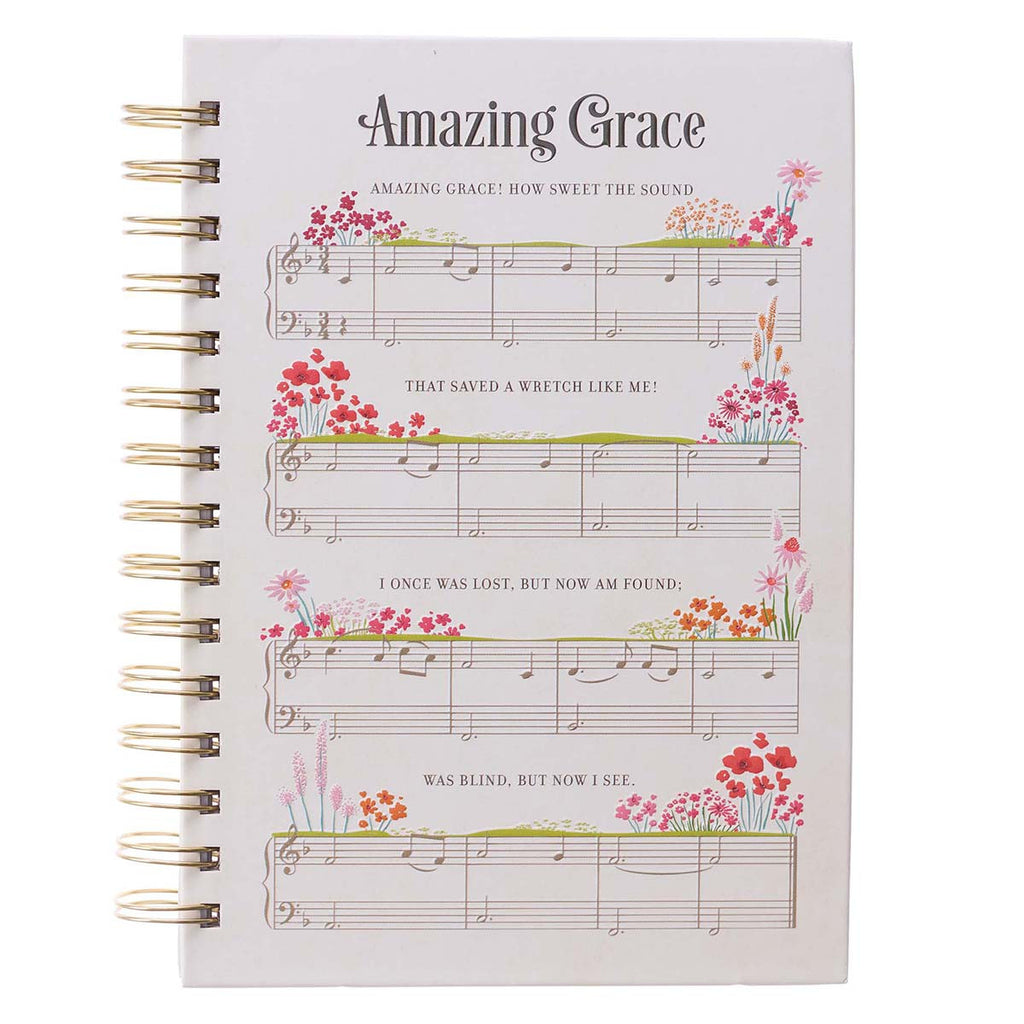 The cover design of this wire bound journal is based on the sheet music for the beloved hymn and is accented with green meadows and groupings of brightly colored flowers in shades of pink and red. The first verse of the song penned by John Newton is used as the sentiment.
