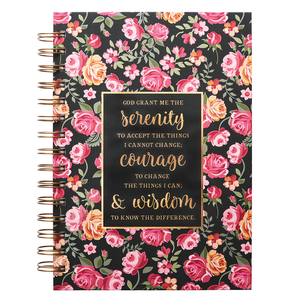 The well-known and beloved poem, the Serenity Prayer, is the theme of the Serenity Prayer Floral Hardcover Wirebound Journal.