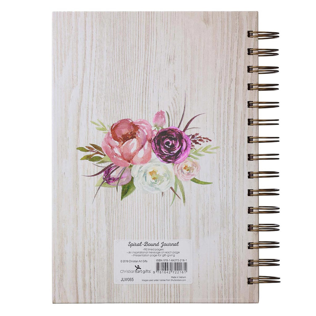 This large wirebound hardcover journal with pink and plum hued peonies is ideal for expressing your innermost thoughts as you journal your way through Bile study. It makes a great gift for the writer in your life like a mother, friend or teacher. A variety of flowers in shades of pinks and purples against a washout white wood grain background accent the inspiration from 2 Corinthians 12:9, “His Grace is Enough.”