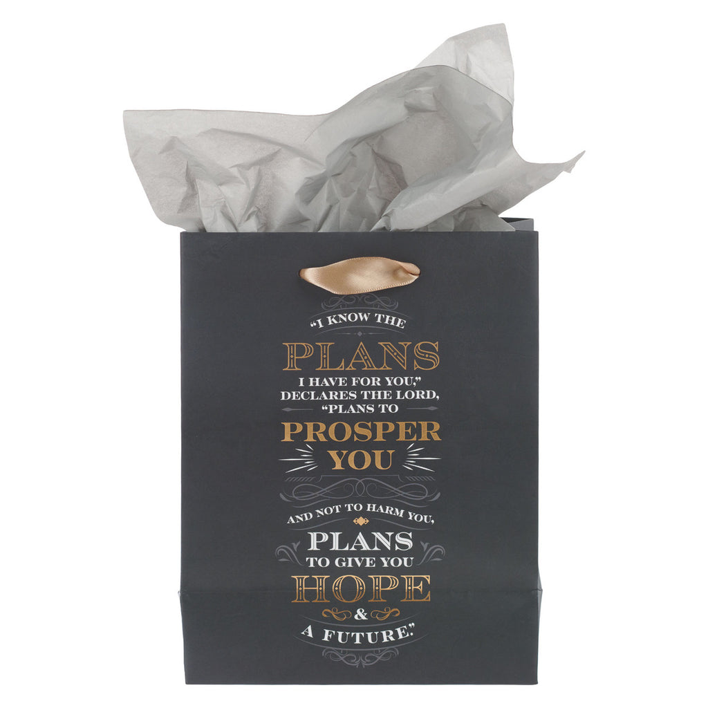 The I Know the Plans Gray Medium Gift Bag will inspire and boost the hope of a graduate student when you present a graduation gift in a beautiful gift bag that shares the message of future hope.