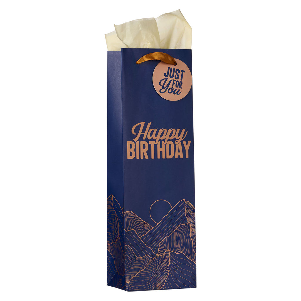 Treat your dad on his birthday when you present your gift in the Happy Birthday Blue Sunset Bottle Gift Bag.