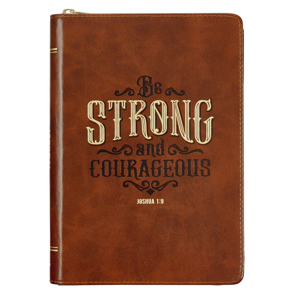 Embark on a healing writing journey with the Strong and Courageous Honey-brown Faux Leather Journal with Zipper Closure, and allow yourself to be uplifted by the profound truth that when you are weak, God is strong. Let this journal's pages be a sanctuary where you can pour out your thoughts, dreams, and fears, finding solace and inspiration in knowing you are never alone.