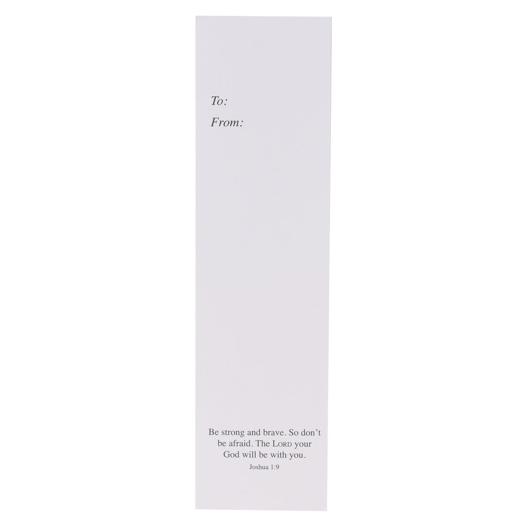 The 10 identical bookmarks in this set are gloss laminated on the front and offer space to write a note to the recipient on the back. The back of the bookmark also features the entire Scripture verse printed at the bottom.