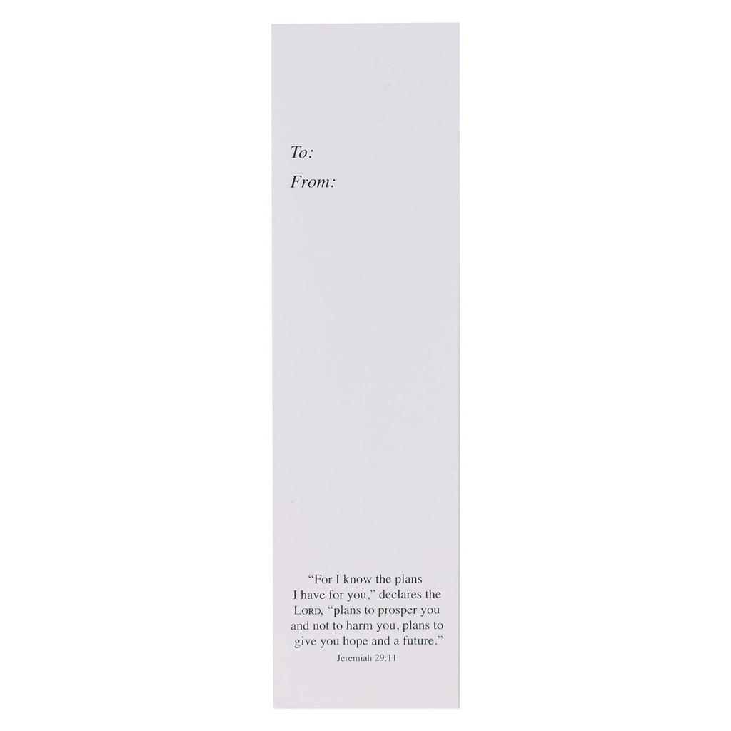 Each set includes 10 identical durable gloss laminated bookmarks, so you can distribute them to your entire class or use them as party favors at a graduation celebration. The back provides space for you to add a personal message of congratulations and features a repeat of the Scripture verse in small black font.