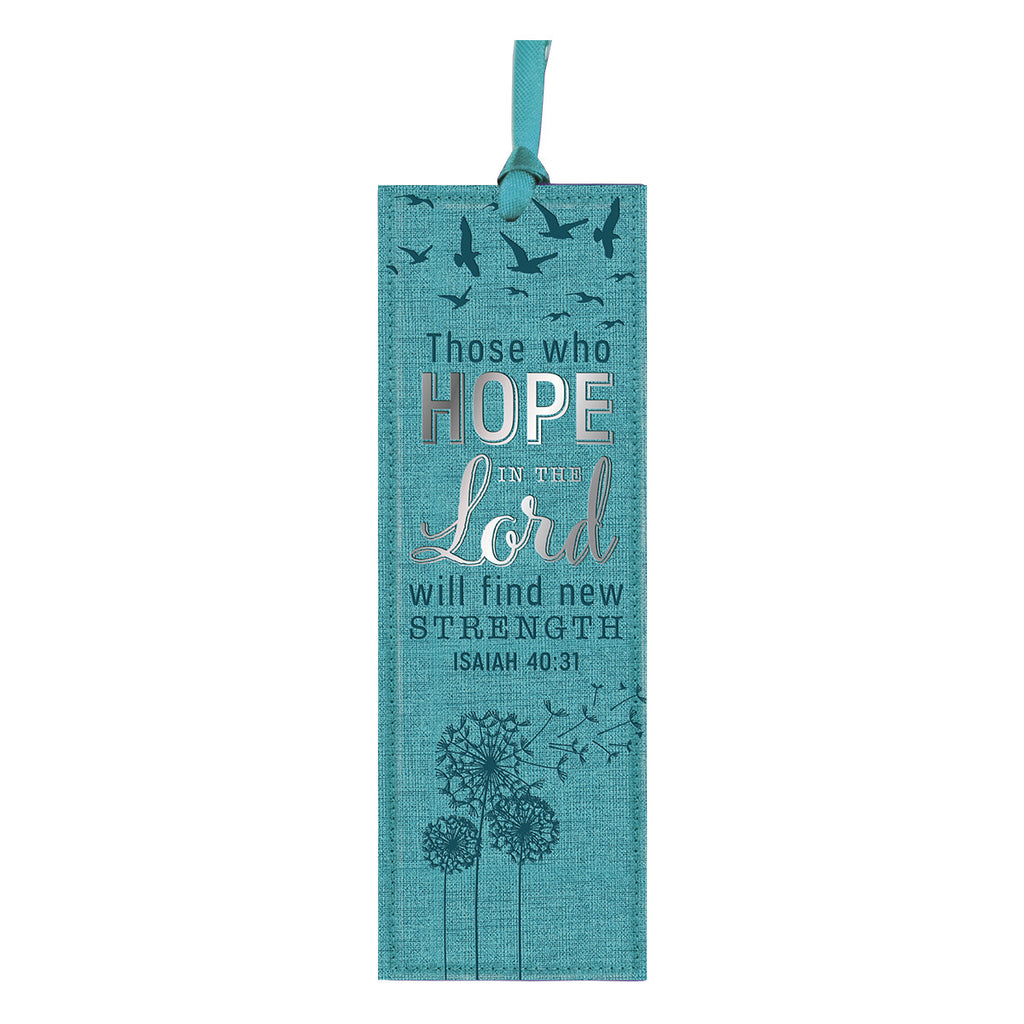 Mark the page any of your books with the reminder to hope in God and find your strength in Him. This teal bookmark printed with the verse from Isaiah 40:31 and embellished with silver foil lettering belongs to the Soar collection. The Soar collection includes a promise book, magnet set of three, metal keyring, mug, and medium gift bag, along with this bookmark. This bookmark features images of birds in flight and dandelions being blown, symbolizing hope. This bookmark paired with any other item from the collection would make a heartwarming graduation or sympathy gift.