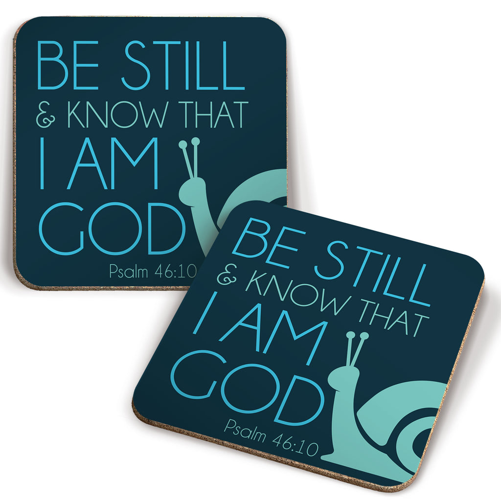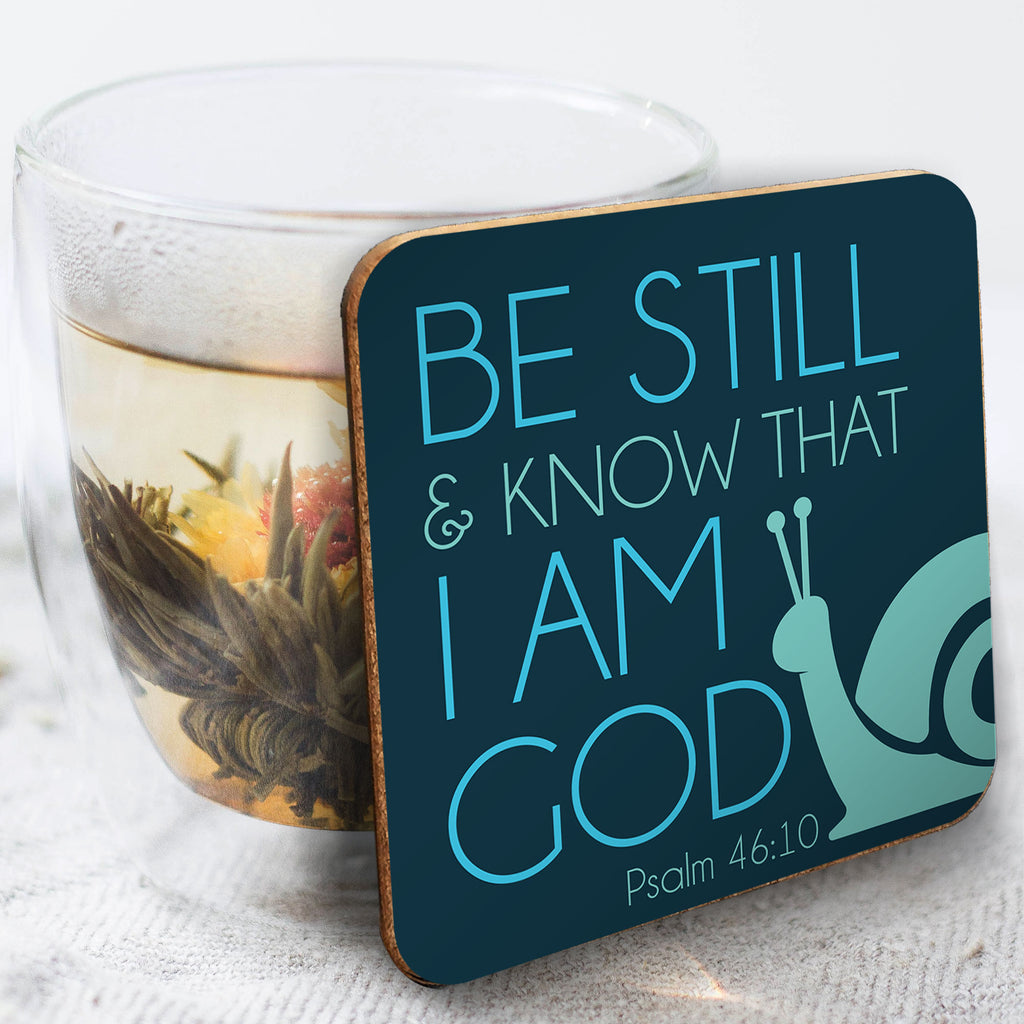 Wording on coaster: ‘Be still and know that I am God’- Psalm 46:10