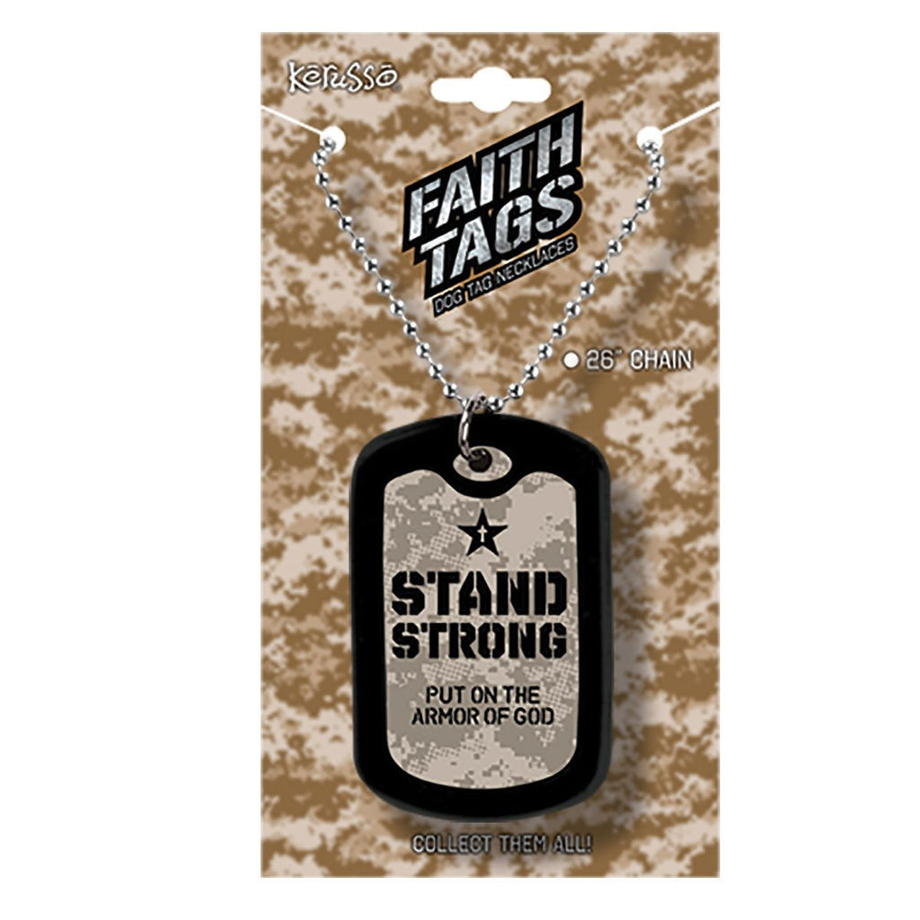 Plant your feet on solid ground with this “Stand Strong” dog tag in Military/Desert Camo. Ephesians 6 gives us the blueprint for standing strong, putting on the armor of God to fight the good fight in the battles of life.