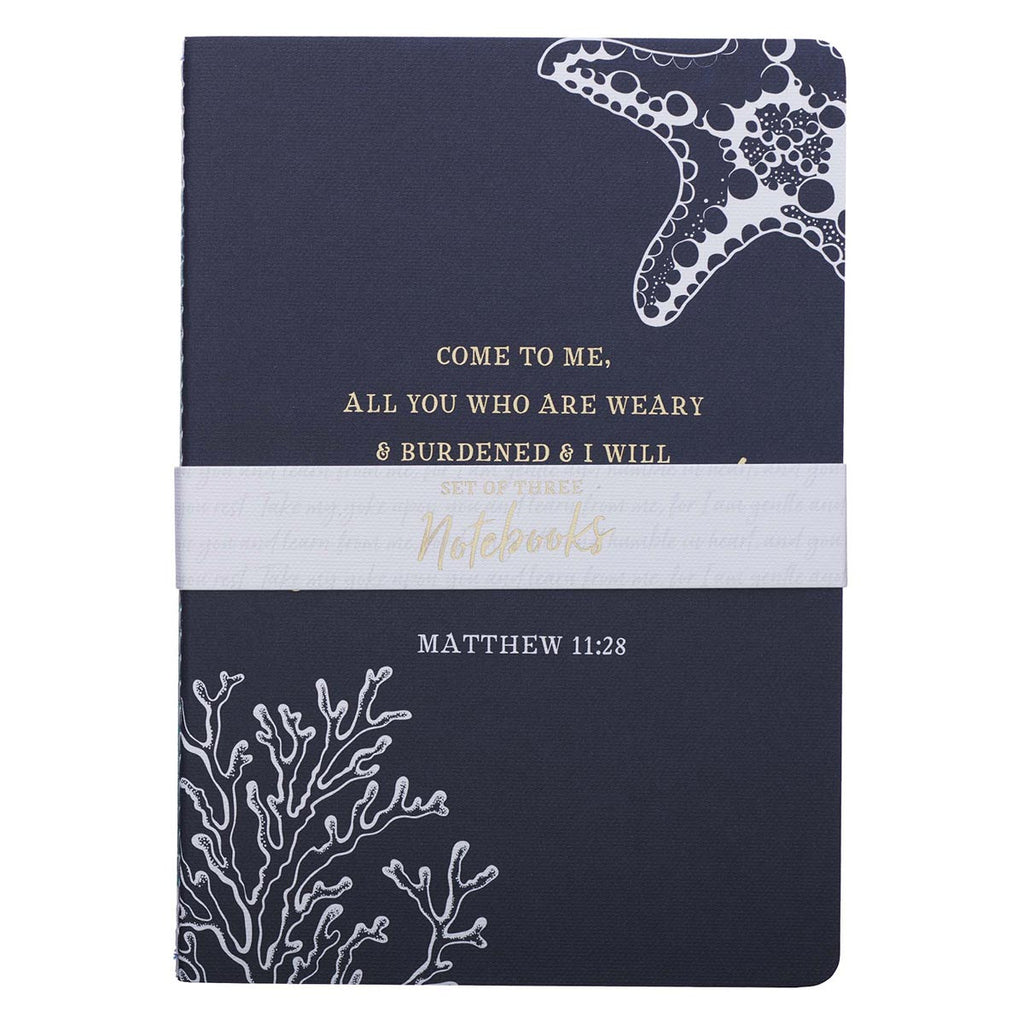 Each notebook is adorned with different elements from the Give You Rest Collection beach-based graphics family and foil-printed verses taken from Matthew 11:28, “Come to me, all you who are weary and burdened and I will give you rest.”