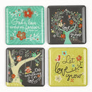 Our inspirational Refrigerator Magnets from the Love Grows Collection are cheery, colorful and so functional. We all use the fridge as a household bulletin board for lists, messages, artwork and photos. These unique sets of 4 magnets will instill a spiritual lift each time. The glossy, epoxy-filled magnets are 2 inch square. The Love Grows Collection features the vibrant artistry of Sally Sharp and the displayed sentiment and Scripture include:
