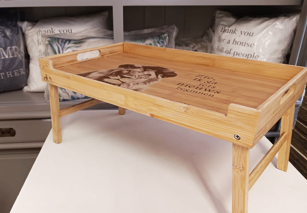 Dit mooie dienblad kan zowel praktisch als decoratief gebruikt worden. Praktijsch tijdens het ontbijt op bed of eten op de bank. Ook kun je het dienblad bijvoorbeeld als een leuk onderstel voor je accessoires gebruiken.