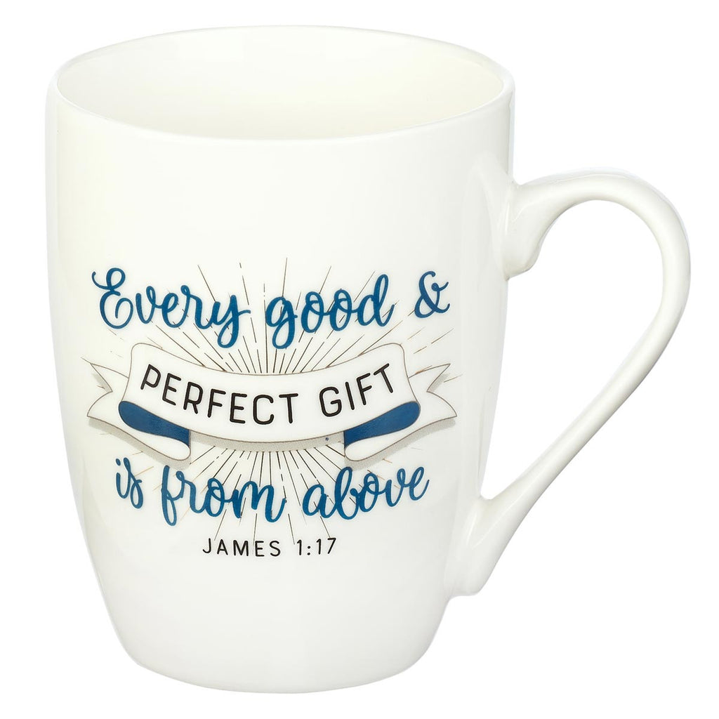 The white ceramic Every Good Gift Coffee Mug features “Every good and perfect gift is from above” in an uplifting design that is perfect to start your day. This Christian coffee mug makes a wonderful gift for a friend, family member, or church leader.