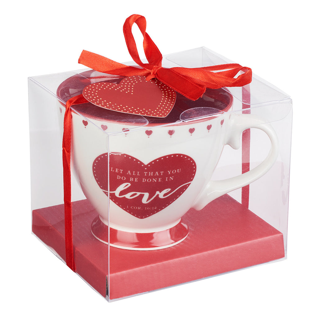 Love is in the air—especially when you give the Love Coffee Mug – 1 Corinthians 16:14 as a gift. This Christian coffee mug makes a sweet Valentine’s Day gift for your daughter-in-law, aunt, friend at work, or mentor. Each time they sip their favorite hot beverage in the Love Coffee Mug, they’ll be reminded of the Lord’s command to “Let all that you do be done in love” from 1 Corinthians 16:14.