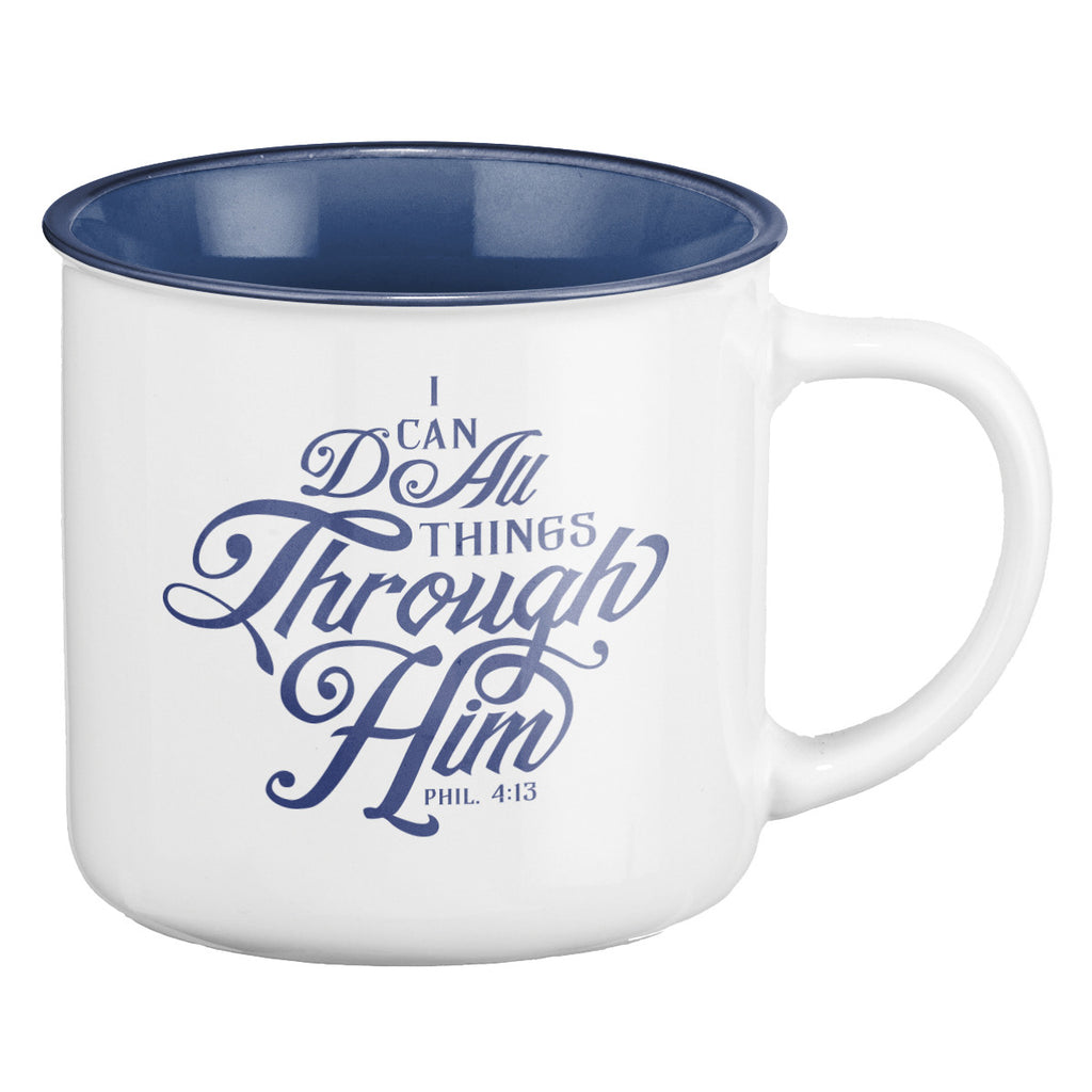 Philippians 4:13 says, “I can do all things through Him.” The I Can Do All Things Camp-Style Mug, which features Philippians 4:13 reminds us that the Lord is able to provide strength for the seemingly impossible. The bold font on the front of this mug alternates between block and script lettering. This mug makes a thoughtful gift for anyone who may appreciate the reminder that the Lord is near to those who love Him.