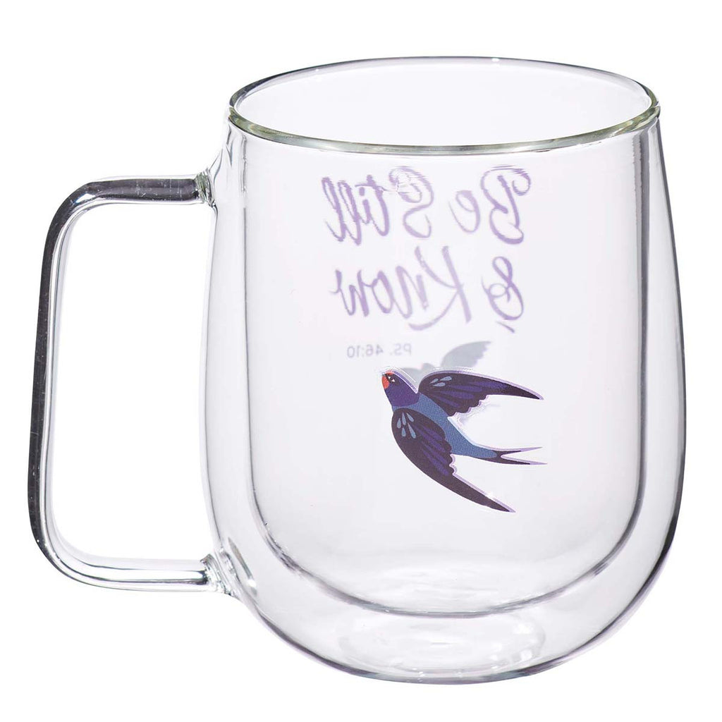 Do you need to remind yourself to just slow down and glide into the presence of the LORD? The Be Still and Know Double-walled Glass Mug will be your companion. The Be Still and Know Double-walled Glass Mug also makes a great appreciation gift, as well as a good reminder for a friend facing challenging times!