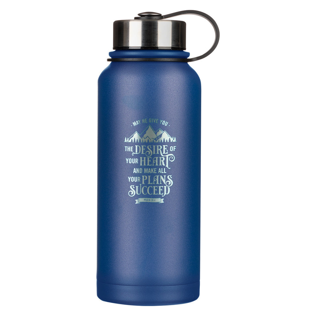 Send your graduate off with a water bottle that will last for years and a blessing that will warm his heart when you wrap the Desires of Your Heart Navy Stainless Steel Water Bottle as a graduation gift.