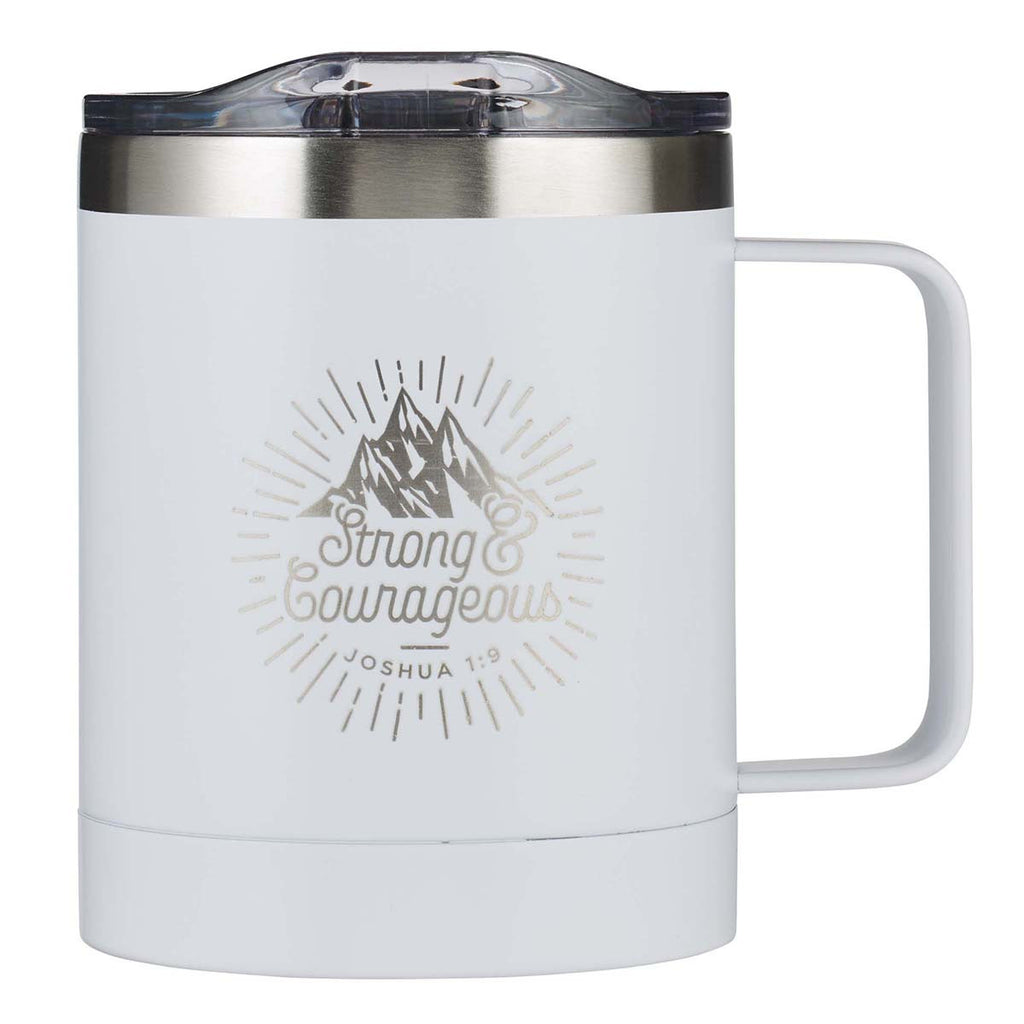 Inspired by Joshua 1:9, the white Strong & Courageous Camp Style Stainless Steel Mug highlights the promise that we can be strong and courageous because the Lord will be with us wherever we go. However insurmountable our challenges may seem; if we align our plans with God's plans, we can face any problem with boldness and determination. So, fill this white stainless steel mug with a fresh brew and remember to persevere with confidence.