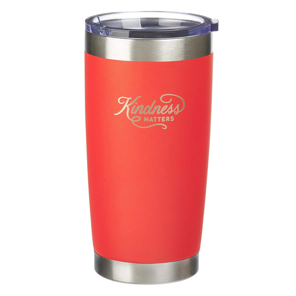 The deep orange Kindness Matters Stainless Steel Travel Mug bears a simple message with a profound meaning. Even the smallest acts of kindness that we extend toward others affect their lives in ways we cannot even imagine. We may not directly witness how our actions affect others, but treating others with kindness benefits them, ourselves, and humanity in general.