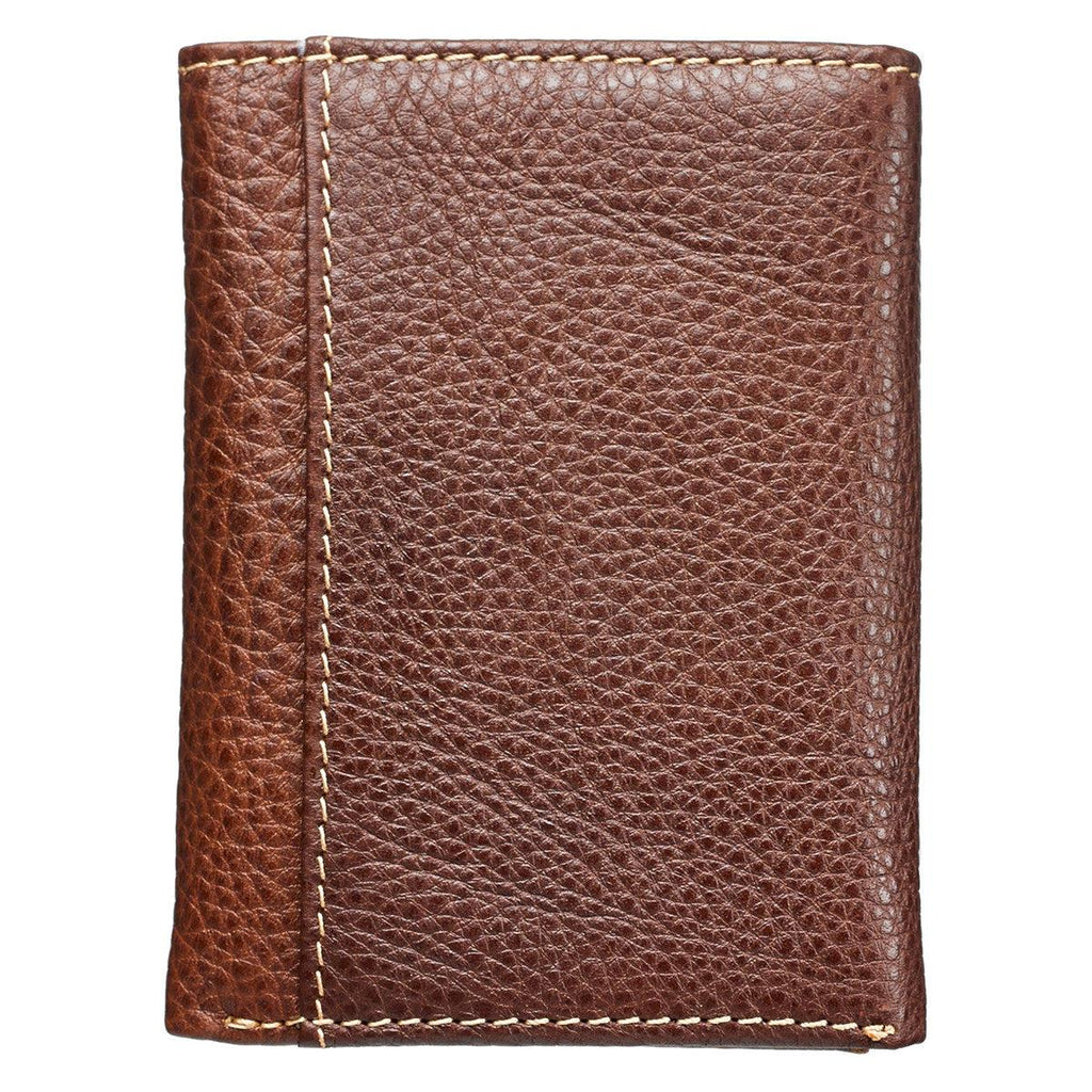 This exquisitely crafted dark brown Names of Jesus Trifold Wallet is crafted from rich brown genuine leather. Brown topstitching adds support to the ID and credit card slots. A heat debossed cross designed with the names of Jesus grace the front cover.