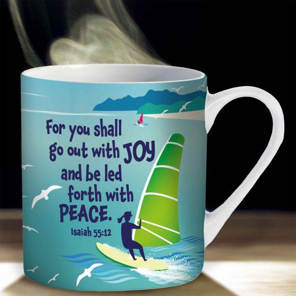Wording on mug: ˜For you shall go out with JOY and be led forth with PEACE. - Isaiah 55:12