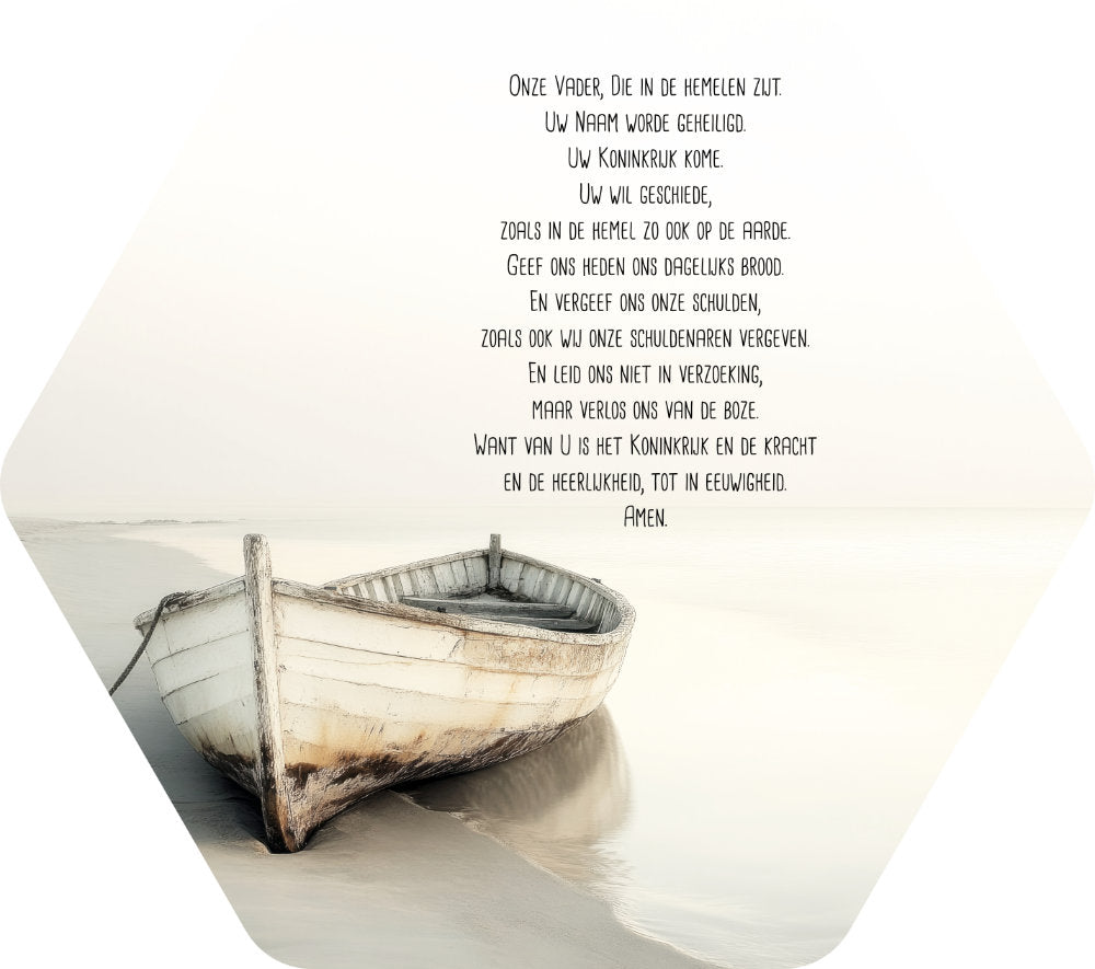 <p>Gemaakt van duurzaam MDF en voorzien van een inspirerende afbeelding die je een hart onder de riem steekt. In zomerfrisse kleuren. Hang het in je woonkamer, kantoor of slaapkamer en laat je dagelijks inspireren. </p><BR><p>Tekst: <br><em>Onze Vader, Die in de hemelen zijt.