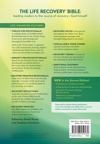 The Life Recovery Bible 25th Anniversary Edition points to God himself as the primary source of recovery. Millions of people have been helped by this Bible. New articles provide a fresh perspective on recovery. Help for leaders is provided in a general facilitator’s guide and a step-by-step meeting guide. These offer help to anyone starting or running recovery groups at church or in the community.Features:New inspirational PrefaceArticle: A Word about AddictionsArticle: An Early History of Life RecoveryArticle: Thriving in a Secular Recovery GroupArticle: Life-Giving Recovery Groups in the ChurchLife Recovery Facilitator’s GuideStep-by-Step Life Recovery Meeting GuideThe 12 Christian Foundations of Life RecoveryThe 12 Self-Evident Truths of Life RecoveryResources page, directing readers to helpful books and online resources