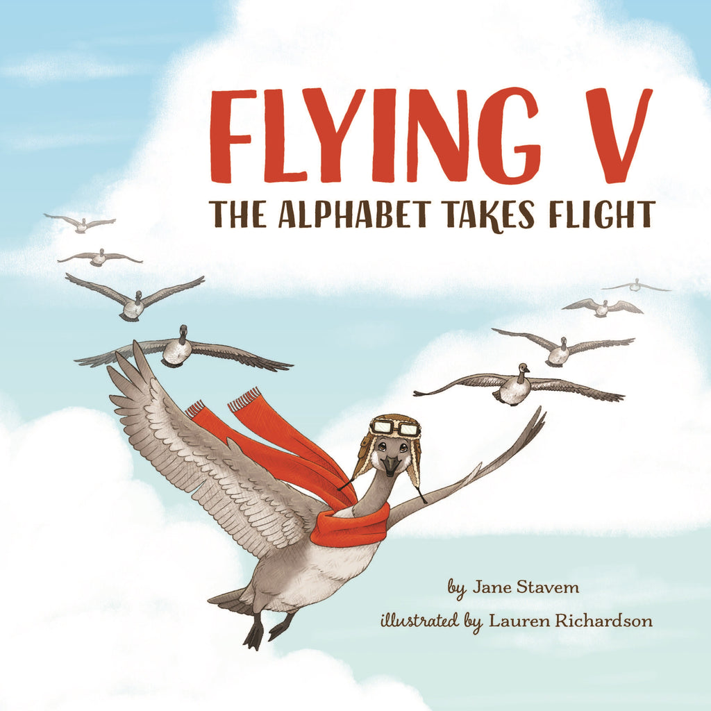 The alphabet picture book, Flying V, puts a creative twist on the annual migratory patterns of the Canada Goose, and finds geese flying in all the letter shapes of the alphabet.With creative visual perspectives, the reader will see things from a bird’s-eye view as Little Goose flies through the alphabet on his way to winter nesting grounds.Children will delight in spotting his red scarf as he imagines himself within the flight patterns.