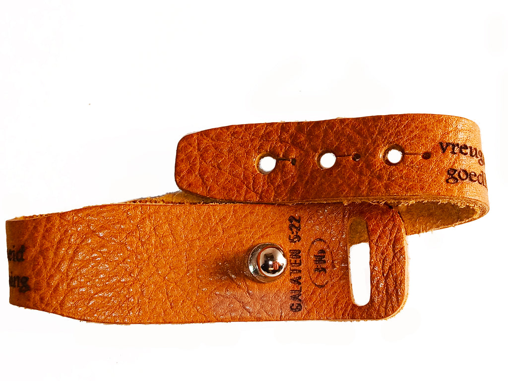 Gemaakt van verantwoord geproduceerd leer uit Nederland, vertelt elke armband een uniek verhaal. U kunt zijn oorsprong traceren terug naar de leerfabriek, de vrachtwagen waarin het werd vervoerd, de weide waar het vee graasde, en zelfs het voer dat ze aten. Deze toewijding aan transparantie en duurzaamheid weerspiegelt onze inzet voor ethisch vakmanschap.