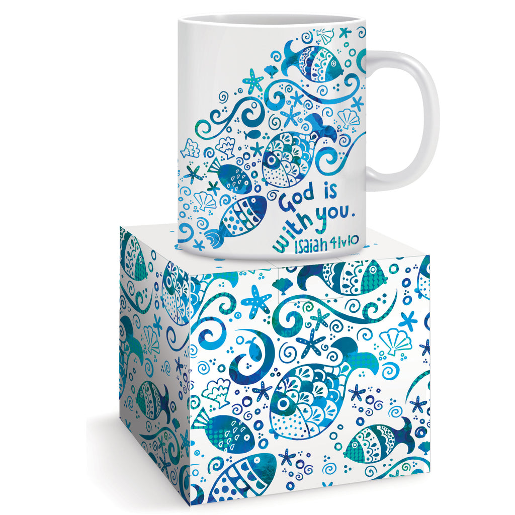 Wording on mug: ‘God is with you’. Isaiah 41:10