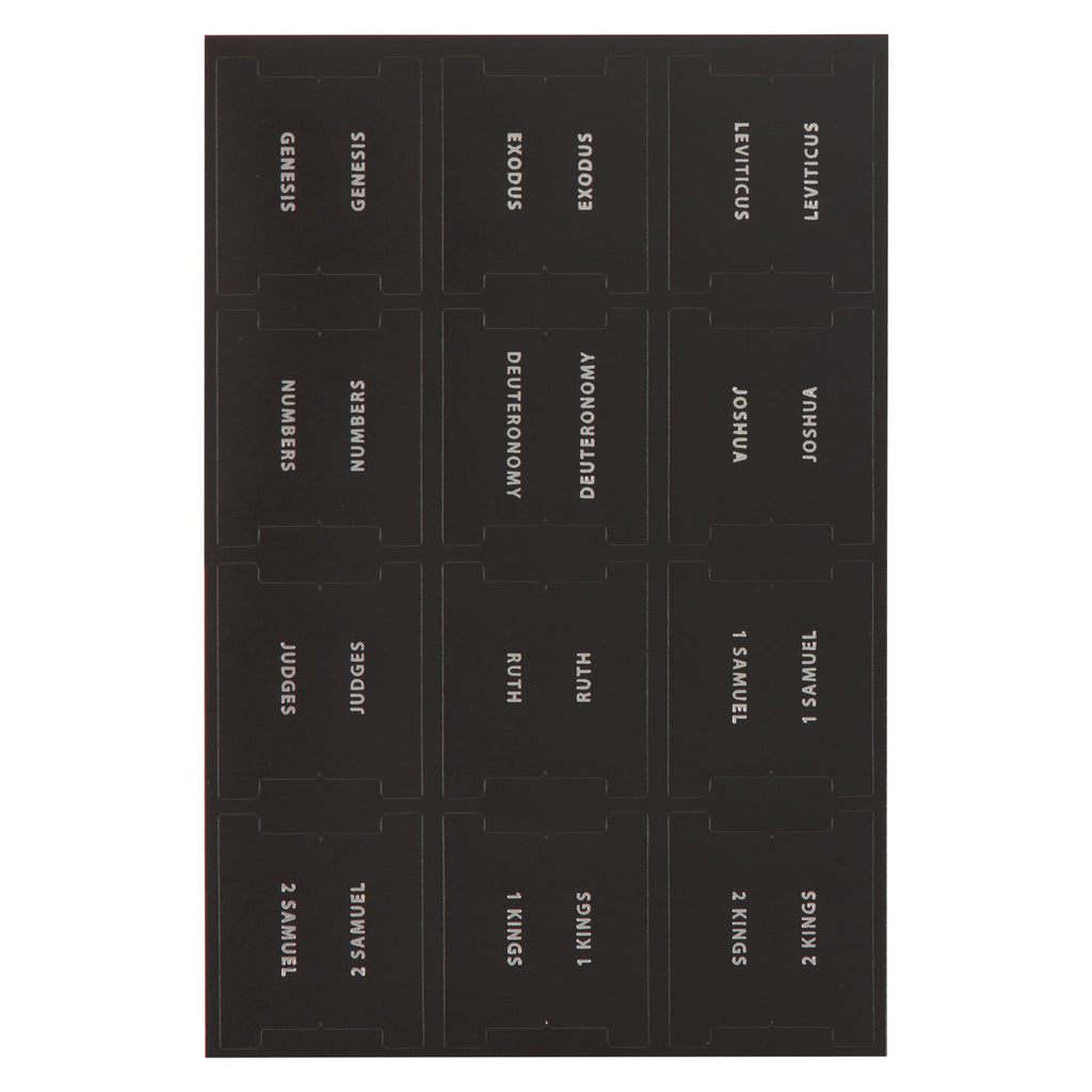 Navigate the Bible with ease when you mark the books of the Bible using the Black and Silver Bible Indexing Tabs.