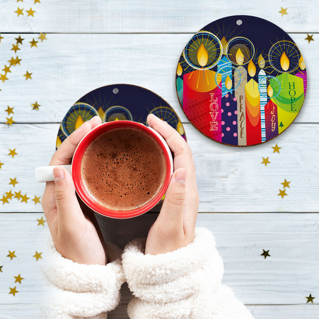 Large ceramic Christmas hanging decoration with beautiful designs. Comes with cork backing and can be used as coaster or mat.