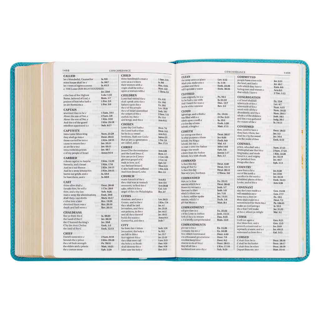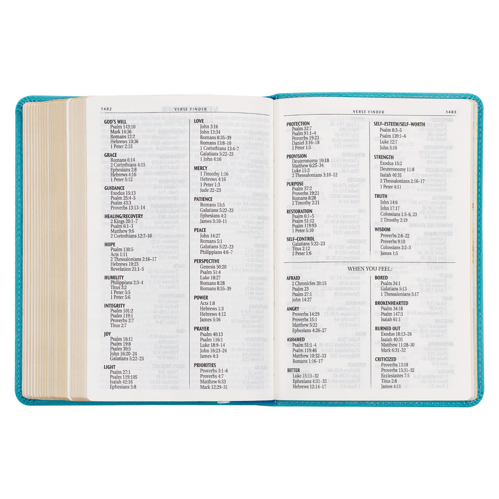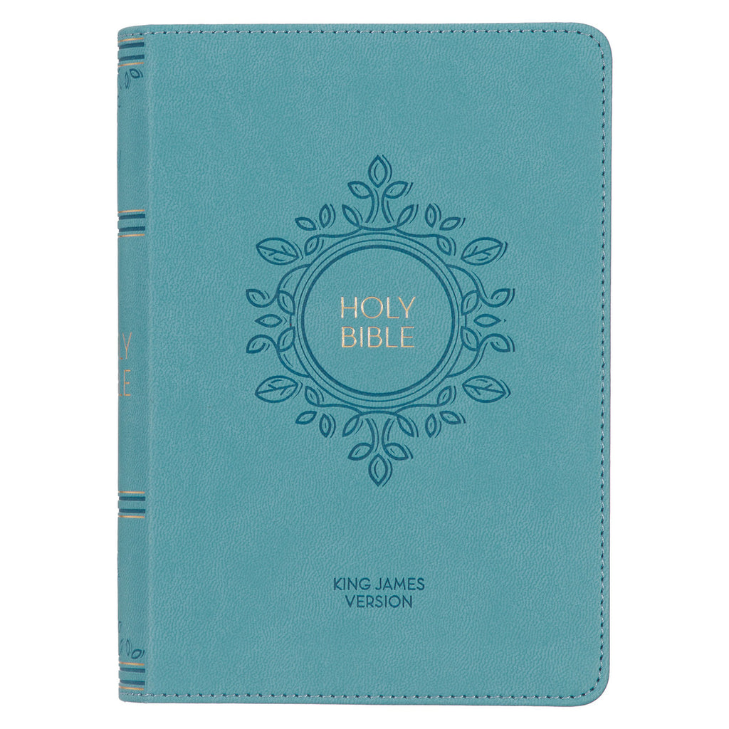 The Aqua Blue Large Print Compact King James Version Bible, with its contemporary color, pretty cover design, and easy-to-read text, blends ancient Scripture with modern convenience. The Aqua Blue Large Print Compact King James Version Bible will be your daughter's favorite childhood Bible and guide her spiritual growth through childhood.