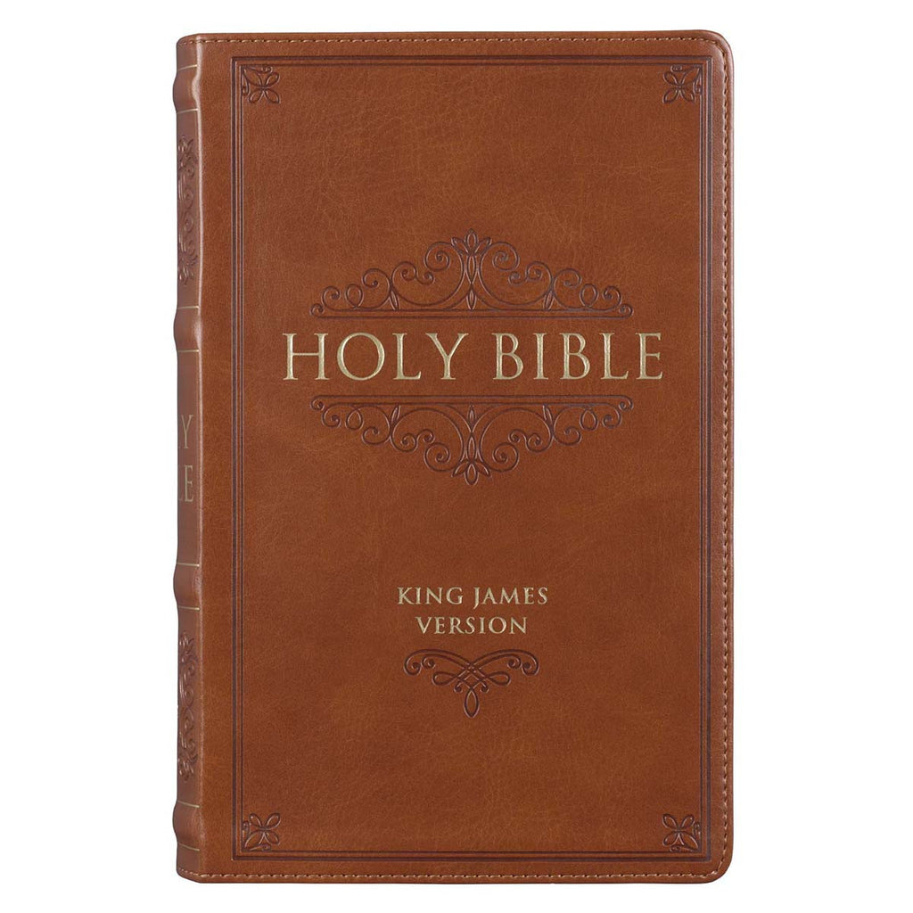 The Brown Faux Leather Giant Print King James Version Bible with Thumb Index is a classic edition of the King James Version of the Bible.