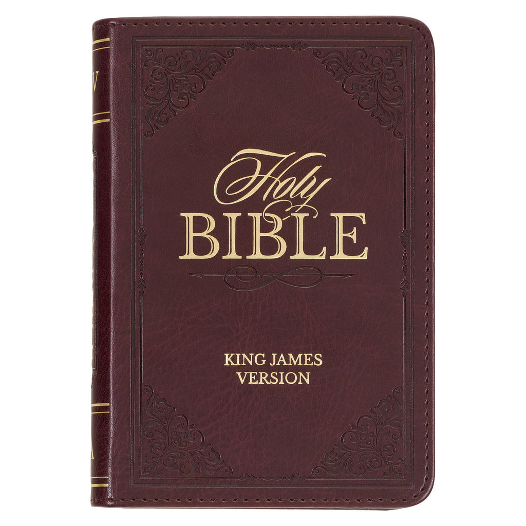 Whether you're exploring new places or simply commuting, let Burgundy Faux Leather King James Version Pocket Bible be your faithful companion, empowering you to nurture your faith on the move. The Burgundy Faux Leather King James Version Pocket Bible can be given as a Christmas, birthday, or graduation gift and will fit seamlessly into a friend or daughter's travel adventures