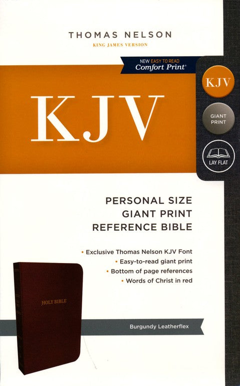 "The literary beauty of the King James Version with the readability of Thomas Nelson's custom size 11 KJV font, plus essential study resources, words of Christ in red- that's the KJV Personal Size Reference Bible Giant Print. The giant print format and beautifully designed layout of this edition will add to your comfort as you dig deep into God's Word. Additional features include an attractive end-of-page reference system, book introductions, a concordance, and full-color maps.