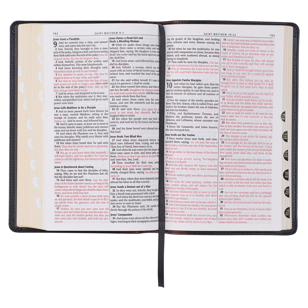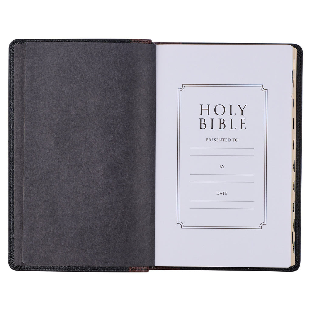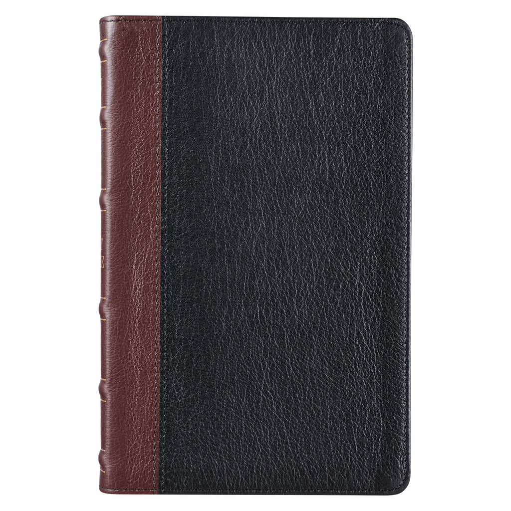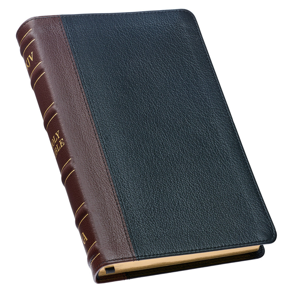 KJV Bible Deluxe Gift Full-grain Leather, Black/Saddle Tan
