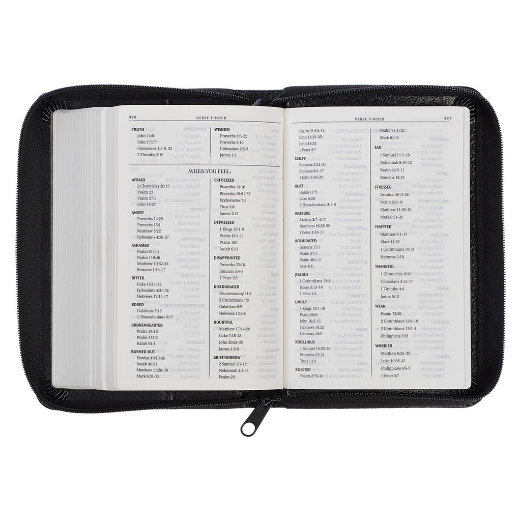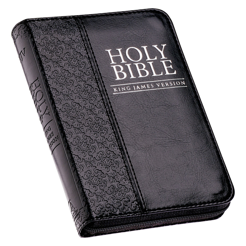 KJV Bible Mini Pocket Faux Leather, Black w/zipper