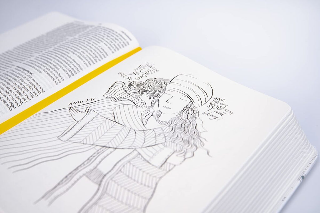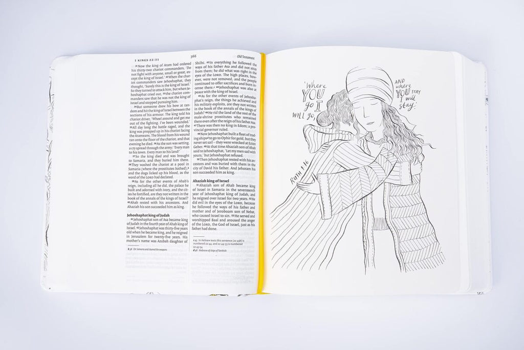 This beautifully designed, hardback NIV Journalling Bible with high quality paper, extra wide, blank margins for note taking and drawing and 32 pages of black and white illustrations to colour in has now been reissued in a larger format with bigger text. The illustrations are taken from British artist Stu McLellan's adult colouring book, THE HEAVENS AND THE EARTH.