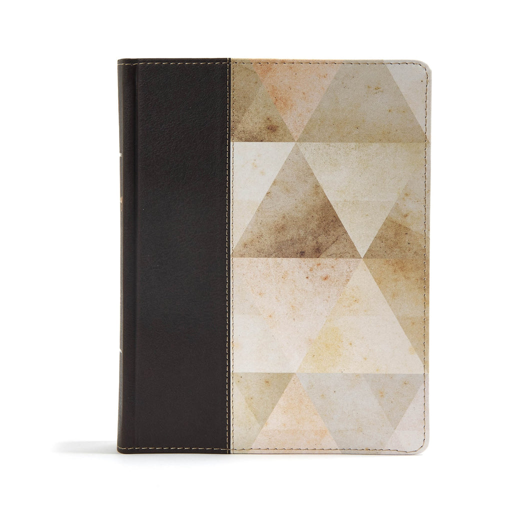 The features of this CSB Bible include Smyth-sewn binding, a presentation page, single-column text, 1.75 inch margins for notetaking and Bible journaling, 8-point type, one-year Bible reading plan, concordance, full-color maps, and more. Available in brown genuine leather over board, teathertouch over board, cloth over board.